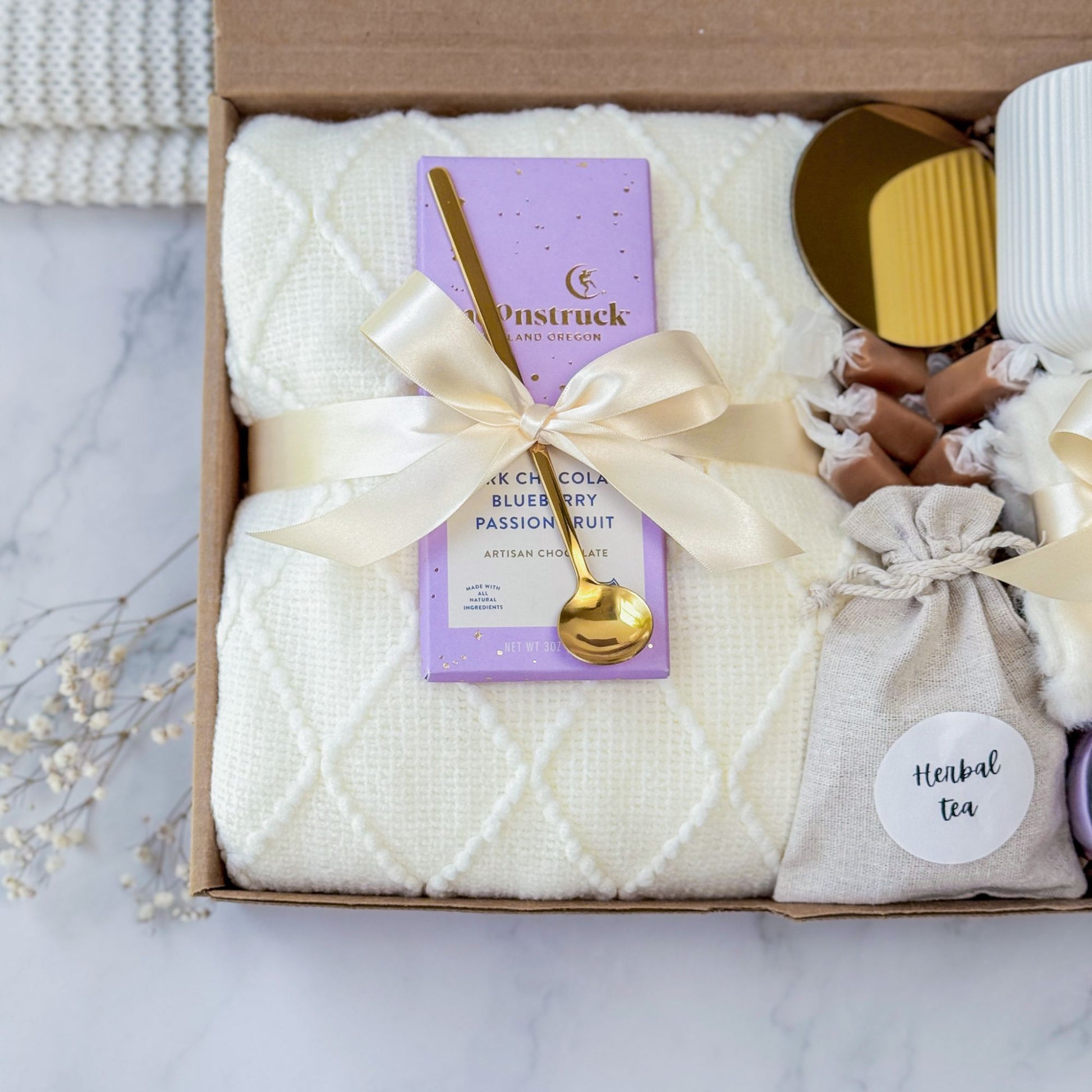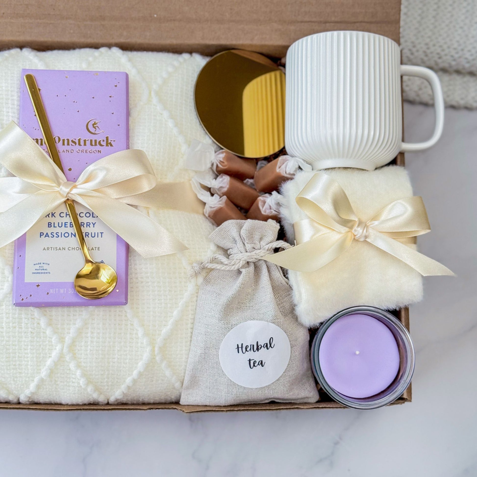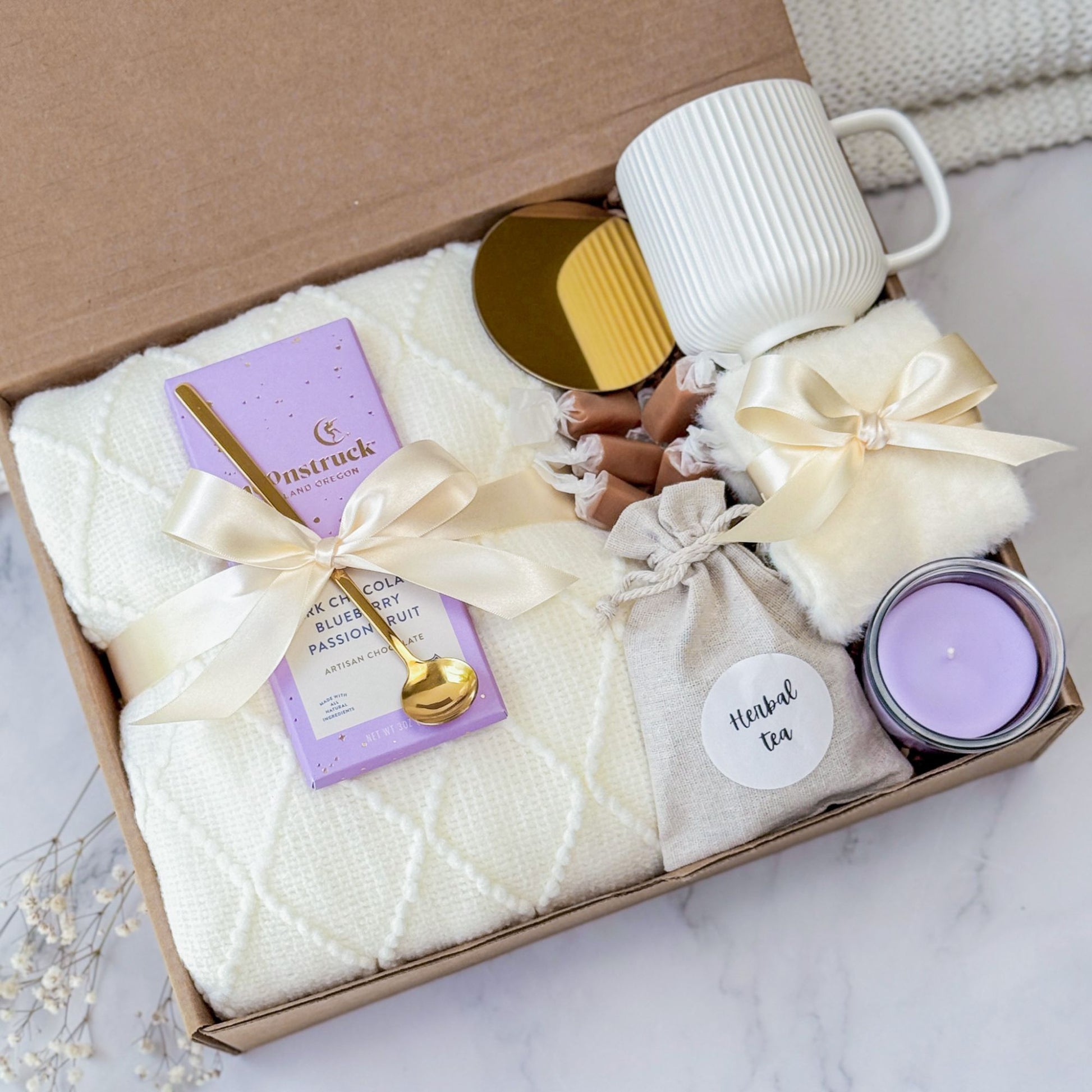 A relaxing lavender gift box perfect for birthdays, thank-you gifts, or self-care moments. Ideal for women who love cozy nights, calming rituals, and soothing spa vibes. A thoughtful gift for stress relief and wellness.