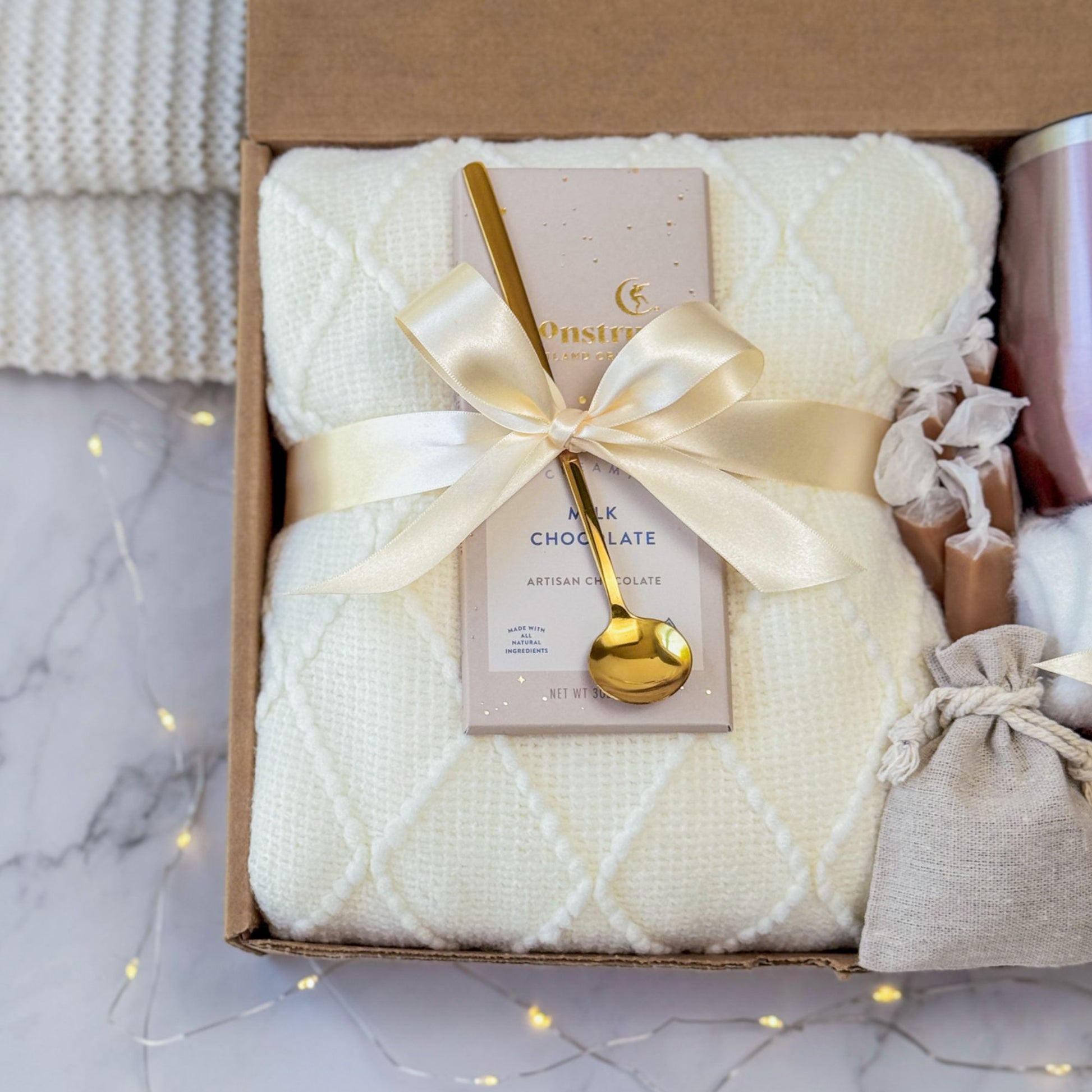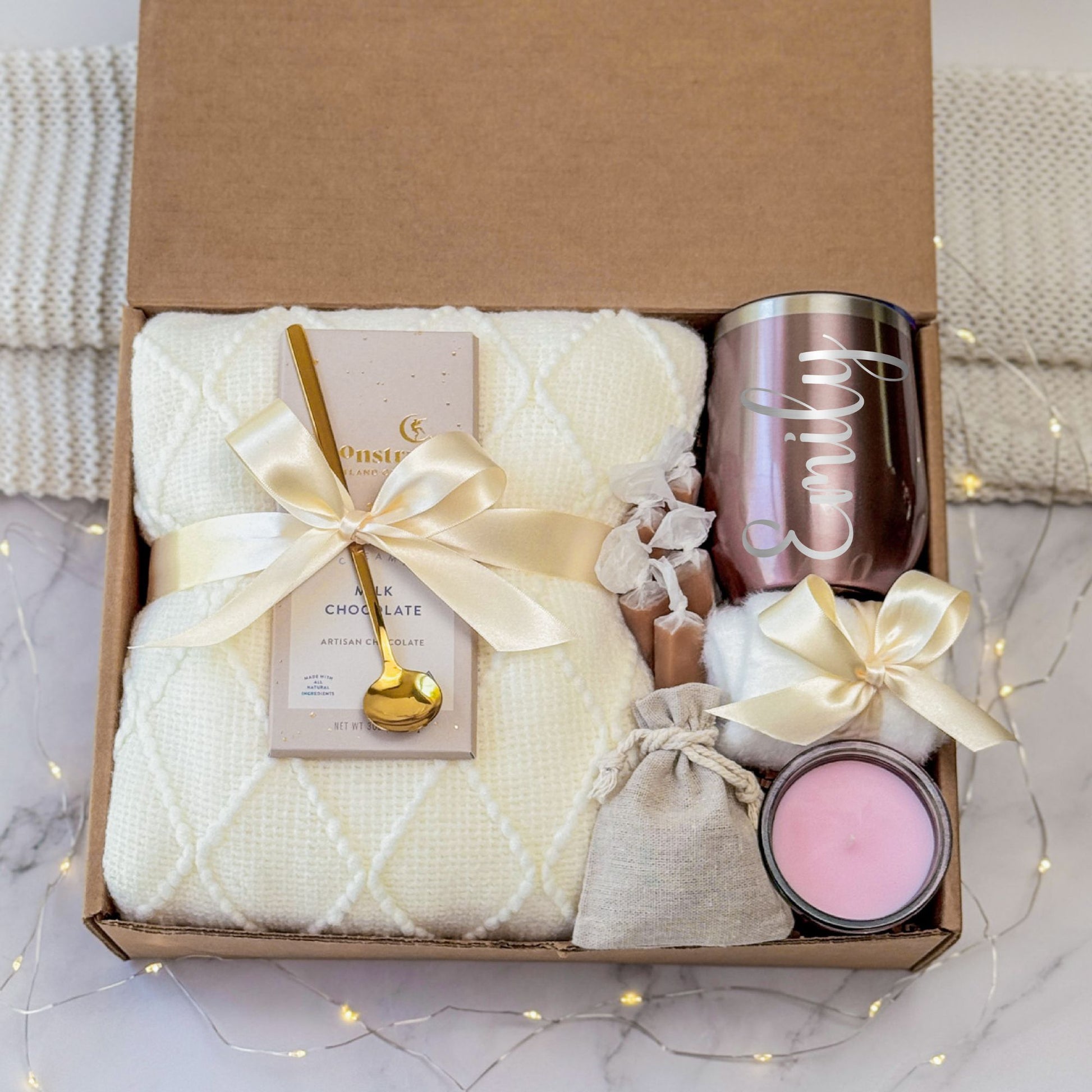 A luxe and cozy gift box with a rose gold vibe, designed for personalized pampering. Great for birthdays, bridesmaids, or just because. This custom gift set brings sweetness and serenity in one beautiful box.